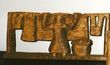 Carving below is from memory of a haunting picture in a newspaper in the 1950's of a cold U.S. soldier during the Korean War.